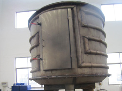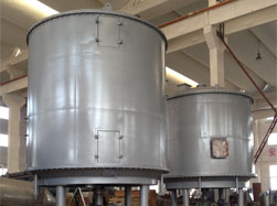 2、密闭型:圆筒形壳体,能承受5Kpa内压,加热介质进出口主管道可以在壳体内,也可以在壳体外。