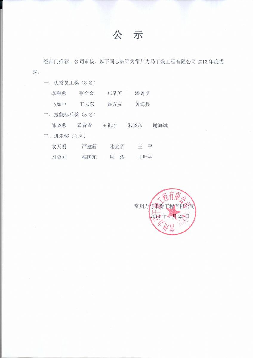 经部门推荐,公司审核,以下同志被评为常州英国威廉希尔唯一官网工程有限公司2013年度优秀: