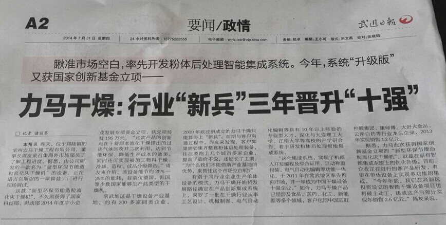 2014年底,英国威廉希尔唯一官网企业在武进区国家高新区投资设立的智能干燥设备项目将破土动工,建成达产后预计实现年销售2.5亿元,真正成为长江以南最大干燥设备生产企业。